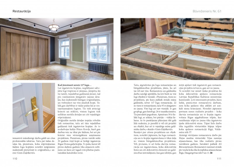 Cita lieta, ka vēsturisko ēku atjaunošanā, un it īpaši tajā daļā, kas saistīta ar galdniecību, ir jāņem vērā dažādi faktori, kuri ietekmē ne vien restaurācijas tempus, bet arī renovācijas vai rekonstrukcijas procesu kā tādu. AS “Būvuzņēmums Restaurators” ir viens no retajiem uzņēmumiem Latvijā, kas realizē vērienīgus būvju atjaunošanas projektus, jo tam ir gan vajadzīgie restaurācijas speciālisti, gan arī nepieciešamā materiāli-tehniskā bāze šāda veida projektu realizēšanai. Nemaz nerunājot par pieredzi, kas sniedzas līdz pat tālajam 1951. gadam, kad uzņēmums tika dibināts.
